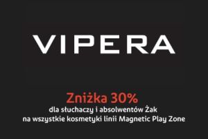 Żak wspólnie z marką VIPERA przygotował dla wszystkich słuchaczy i absolwentów wiosenne rabaty. Od początku kwietnia, aż do 30 września br. można zdobyć, aż 30% zniżki na wszystkie kosmetyki linii Magnetic Play Zone, dostępne na stronie https://sklep.vipera.com.pl